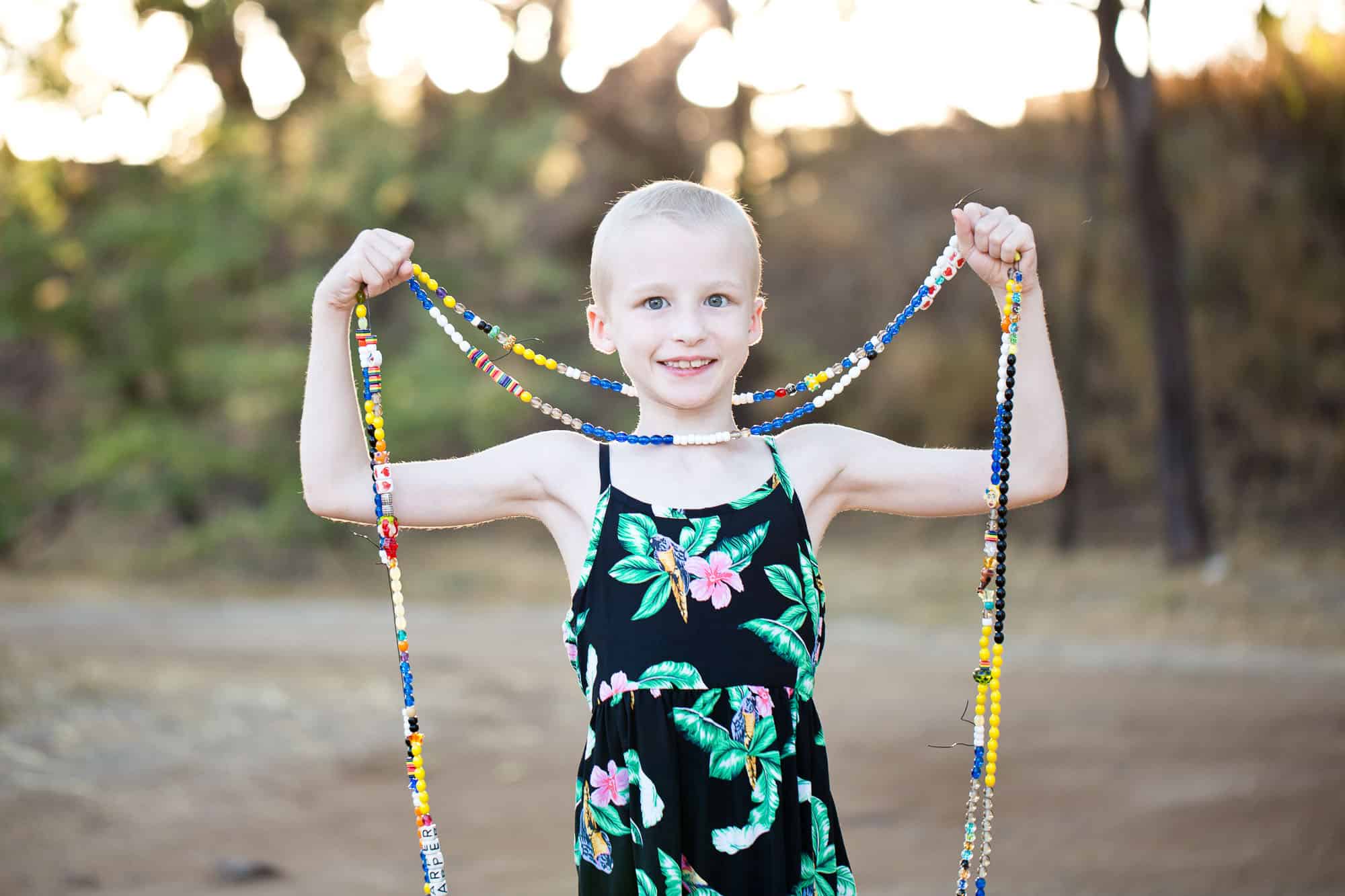 Harper recently finished chemo, but she has struggled to gain weight & has a feeding tube. She also has some neuropathy in her feet from the chemo drugs that sometimes cause her to limp or trip easily. We aren’t sure yet if the chemo will have any long term effects. In total, Harper has had 40 weeks of chemotherapy, 28 days of abdominal radiation, and 4 surgeries. She has spent over 30 nights in the hospital, & missed her entire 2nd grade year of school. We are very lucky in that she hasn’t had many of the complications that are common for kids going through treatment. We also have excellent insurance, which has been a lifesaver. But, it has been hard juggling Harper’s needs with our 2 younger children, and my husband’s job.